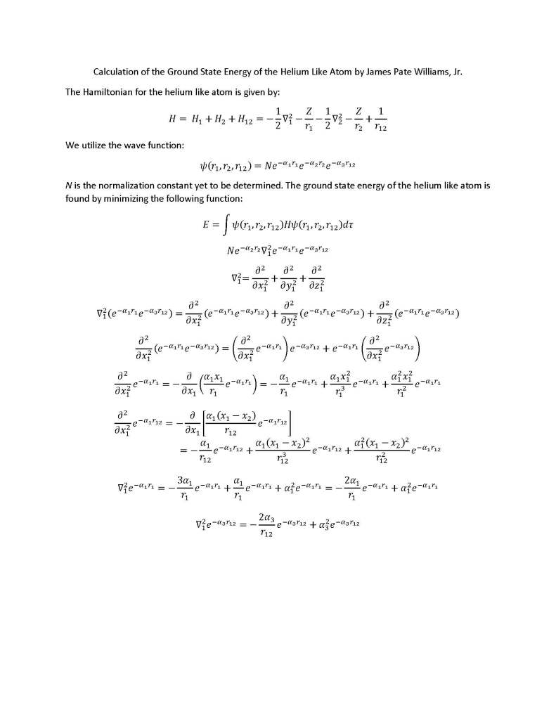 Ground State Energy of the Helium Atom by James Pate Williams, Jr.