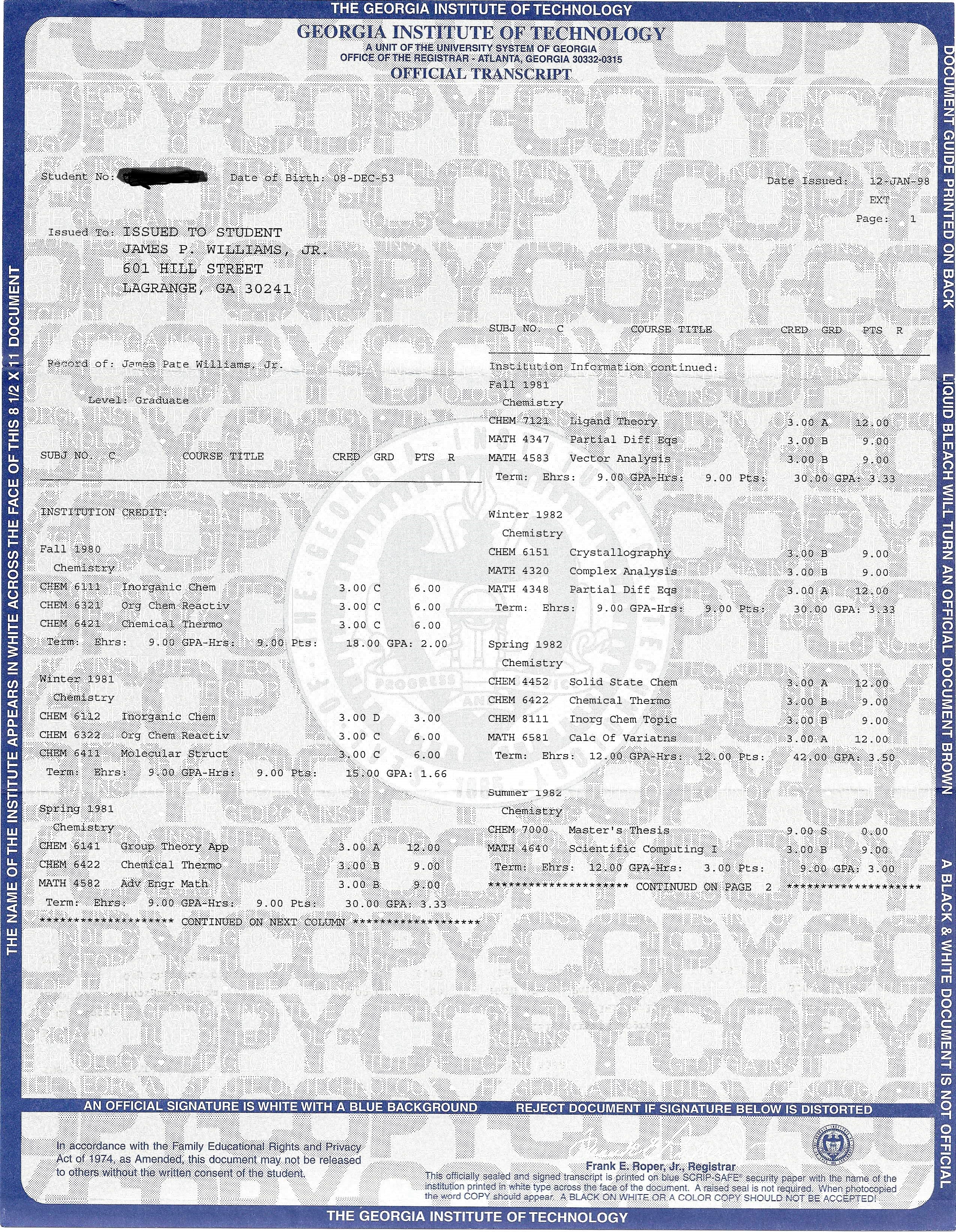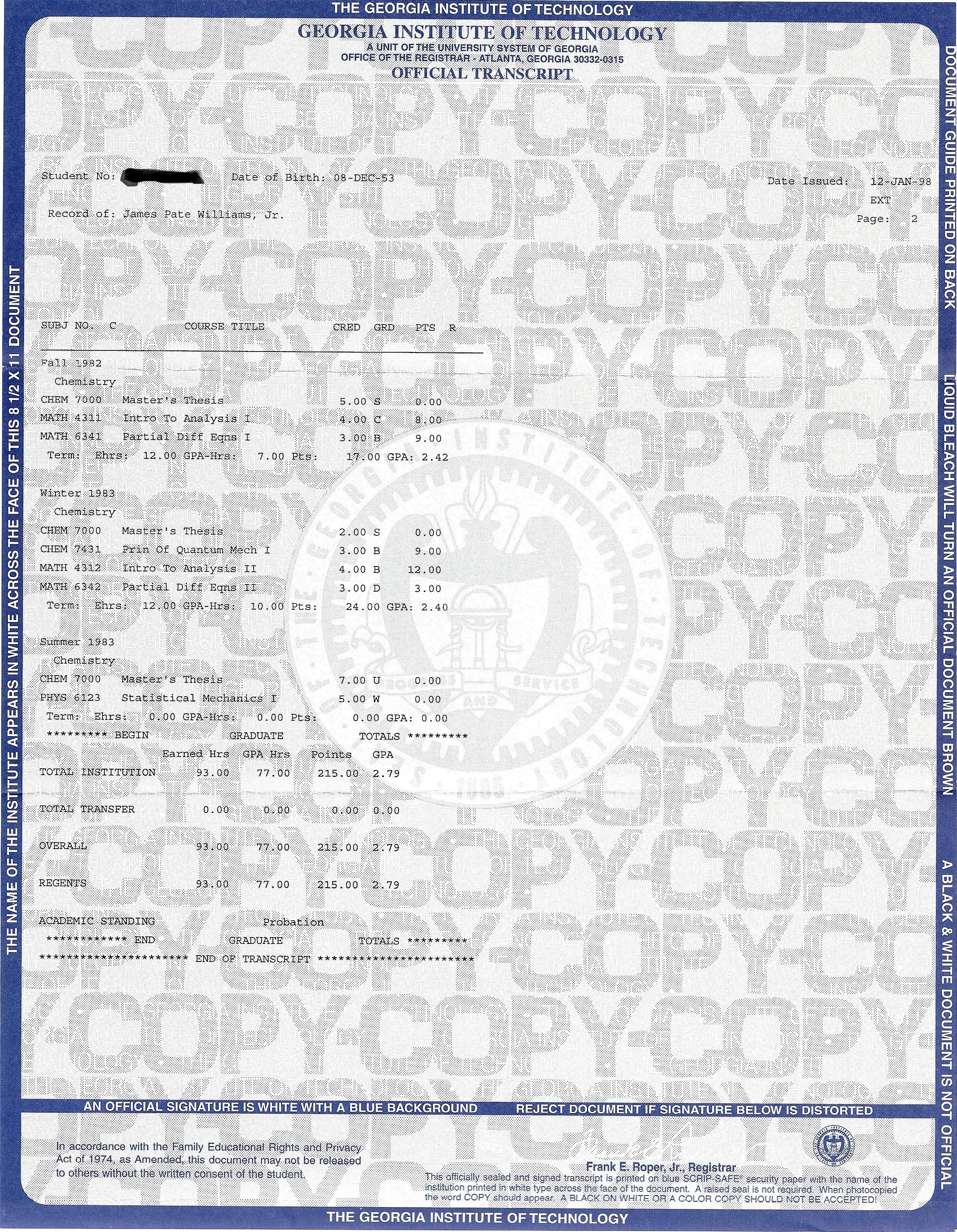 I graduated from LaGrange College on June 2, 1979. I earned A Bachelor of Arts in Chemistry with a low 3.00+ GPA. I applied and was accepted to be a teaching assistant in Chemistry at the Georgia Institute of Technology in Fall Quarter 1980. I left Georgia Tech after the Summer Quarter of 1983 sans a degree and with a poor GPA of 2.79 out of 4.00.