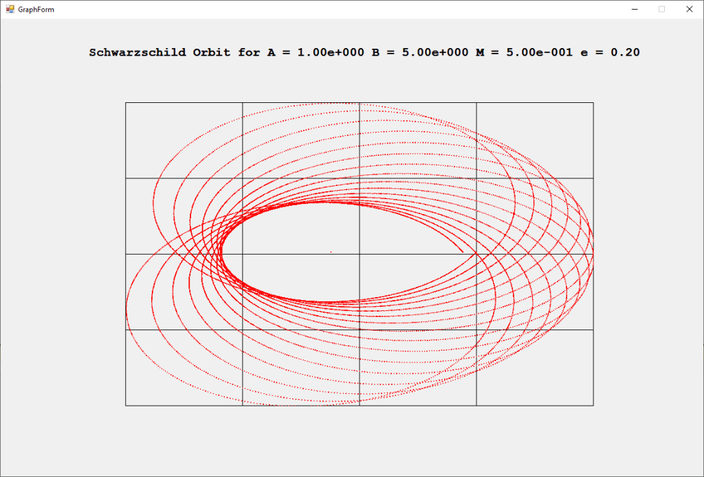 There are three classic theoretical tests of Albert Einstein’s Theory of General Relativity: the perihelion precession of Mercury, the other Solar System planets, and the planetoid Pluto, the bending of light by massive bodies, and the gravitational red shift. I recently wrote a C# program for displaying the exaggerated Rosette motion of theoretical planets (Schwarzschild’s solution to Einstein’s general relativity field equation that admit the existence of black holes). I also wrote a C++ program to calculate planetary precession values that agree with experimental results.
