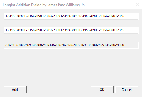 // Message handler for long int addition dialog box.