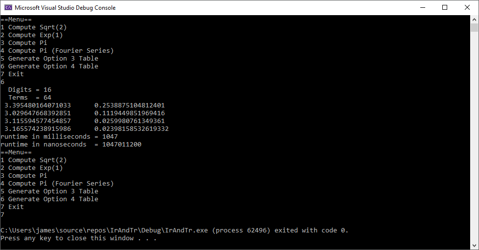 cout << "4 Compute Pi (Fourier Series)" << endl;