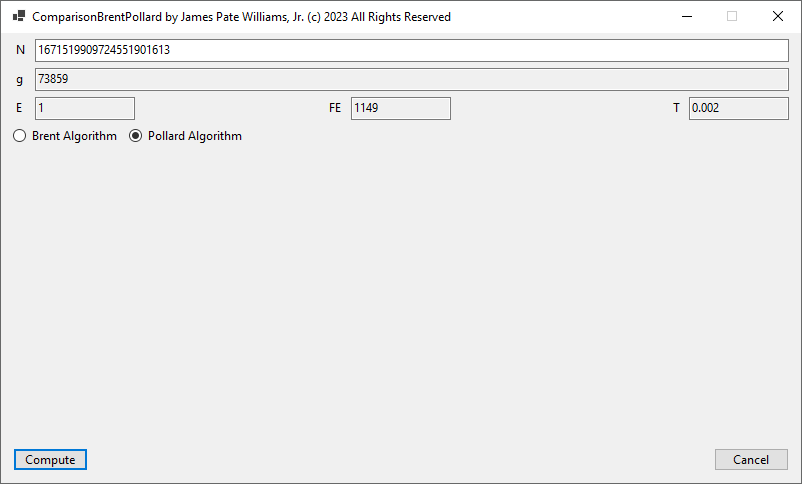 The same factorizations by the Classical Shor-Pollard- James Pate Williams, Jr. algorithm.