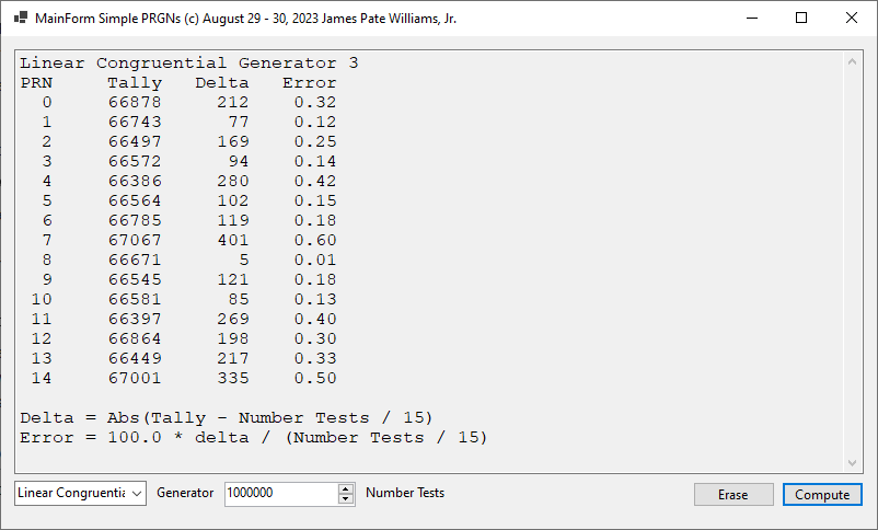 Simple Pseudo-Random Number Generators in C# Implemented by James Pate Williams, Jr.