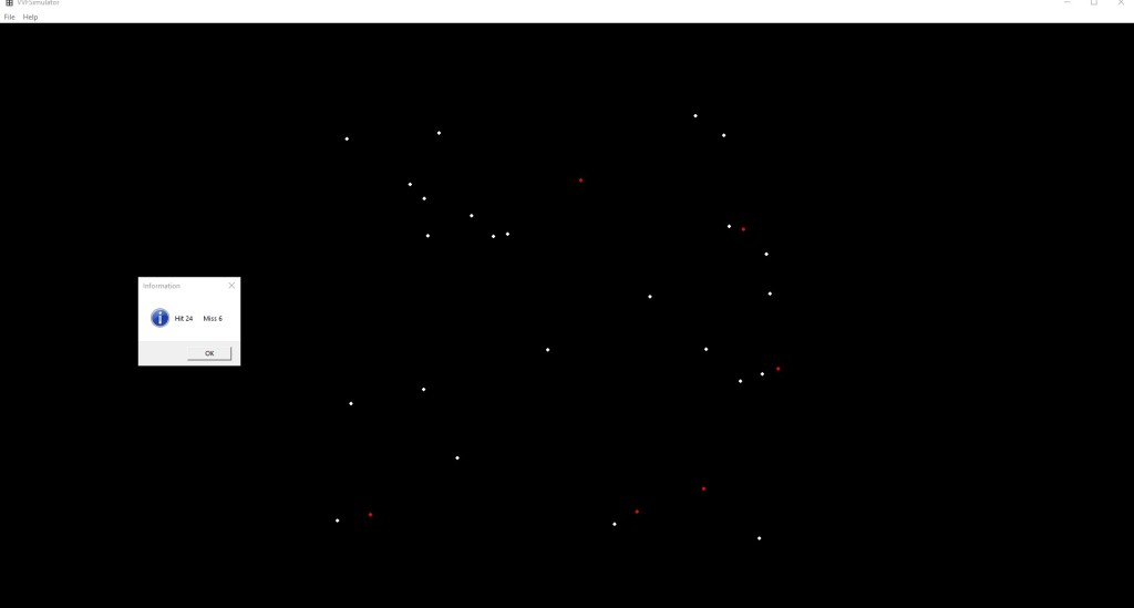 I was administered a VVF Test on Wednesday, January 15, at Dr. Brent Brown and Associates Inc office in LaGrange, Georgia. The test consists of using a headset that has an orange circle in the center of the display. The examinee has a trigger device to click each time a white flash occurs. I decided to write a C/C++ Win32 application to simulate the VVF Test. The following two pictures are from a simulated test of one minute in duration. The white flashes are separated by 1000 millisecond (1 second) and their durations are also 1000 milliseconds (1 second).