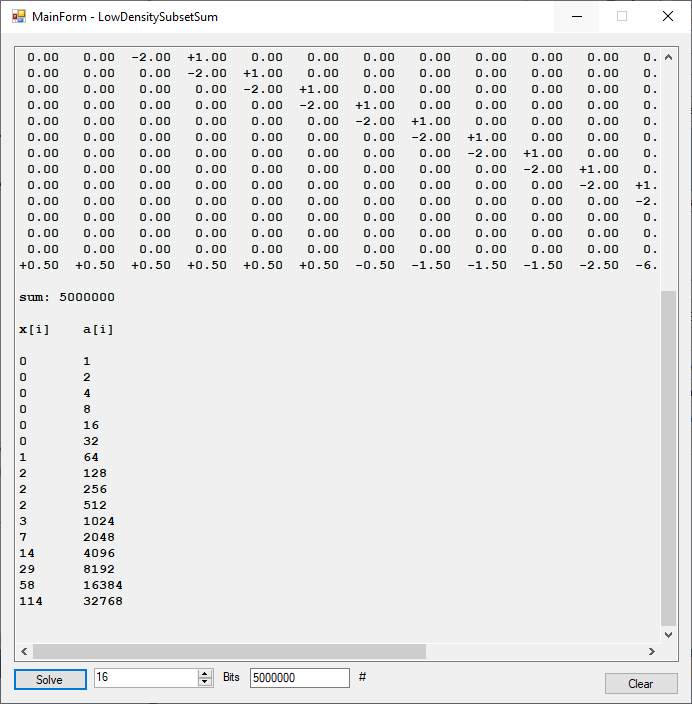 Solving the Low-Density Subset Sum Problem with the LLL Lattice Reduction Algorithm C# Implementation by James Pate Williams, Jr.