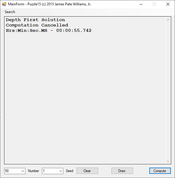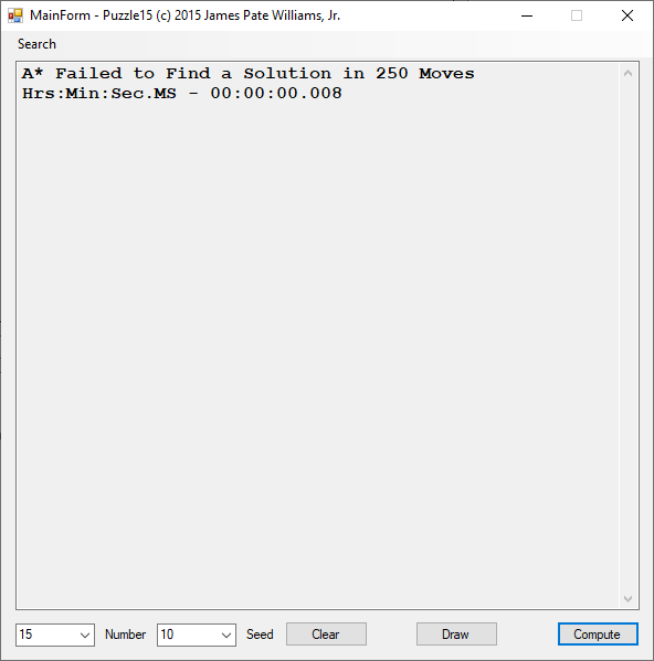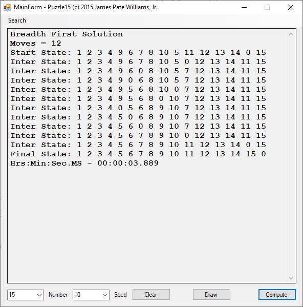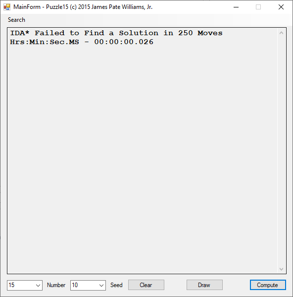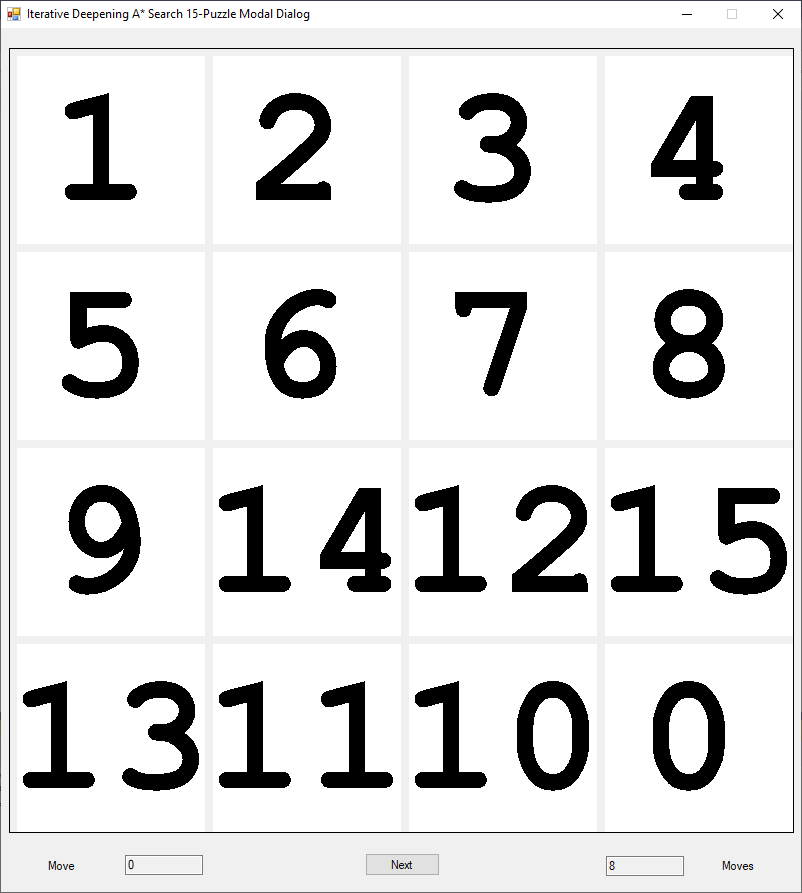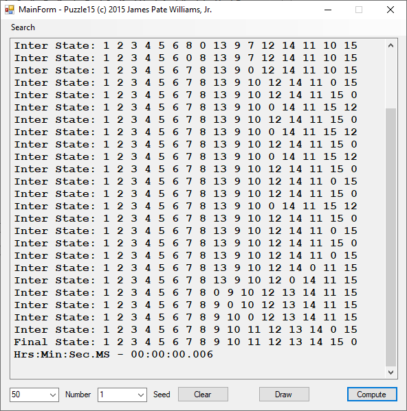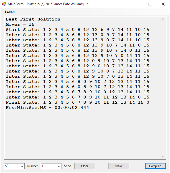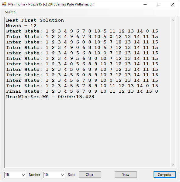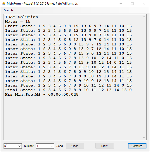 Iterative Deepening A* Search to Solve the 8-Puzzle and 15-Puzzle by James Pate Williams, Jr.