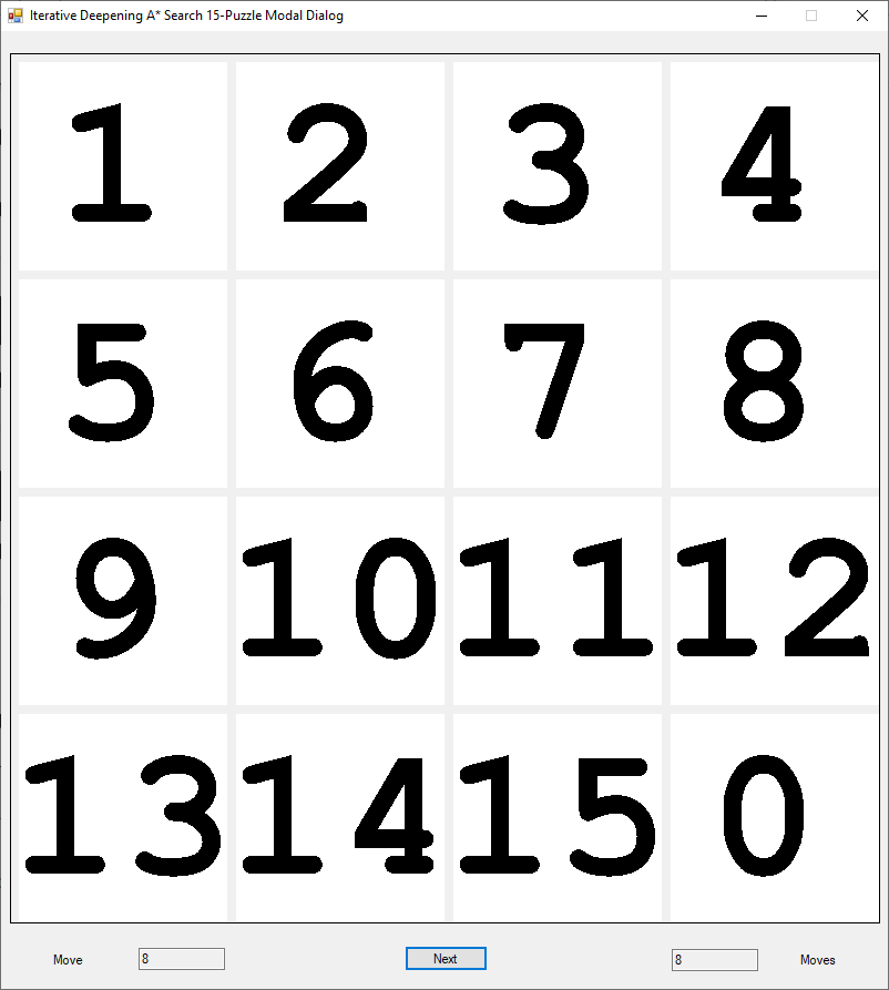 Blog Entry © Friday, November 21, 2025, by James Pate Williams, Jr., Win32 C/C++ Desktop GUI Solution of the 15-Tile Puzzle Using Iterative Deepening A* Informed Seach Algorithm