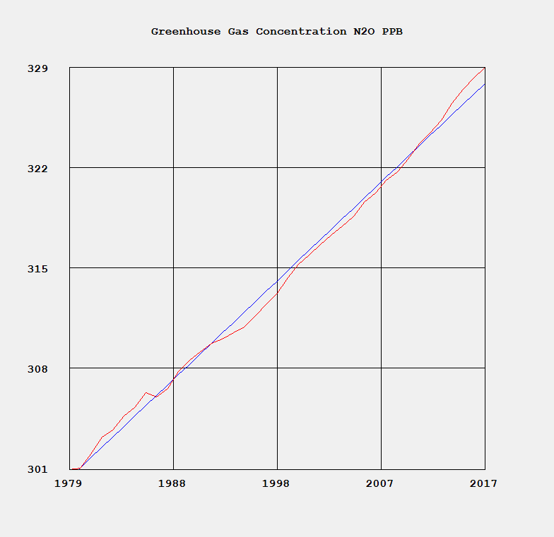 I used the latest recommended data for time period 1979 to 2017. The concentrations of three greenhouse gases were modeled: carbon dioxide (CO2), methane (CH4), and nitrous oxide (N2O).