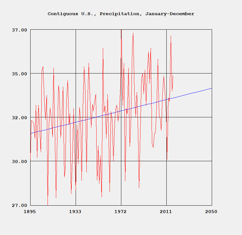 Some plots of the contiguous U.S. precipitation are shown below. The climate is getting wetter thus some parts of the U.S.maybe more prone to floods.