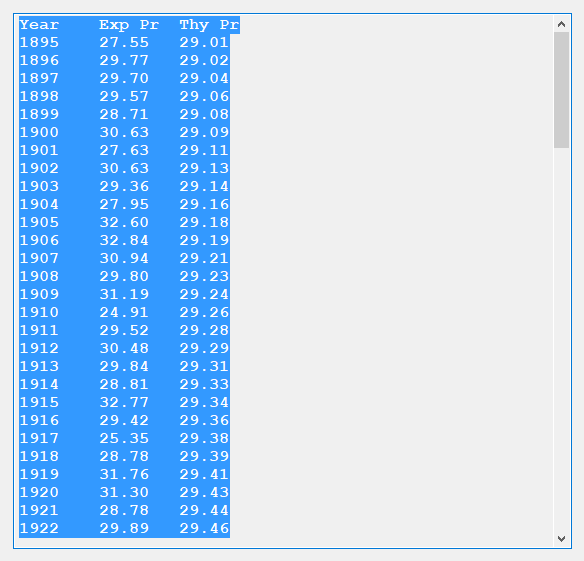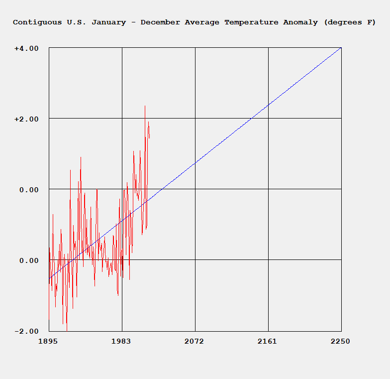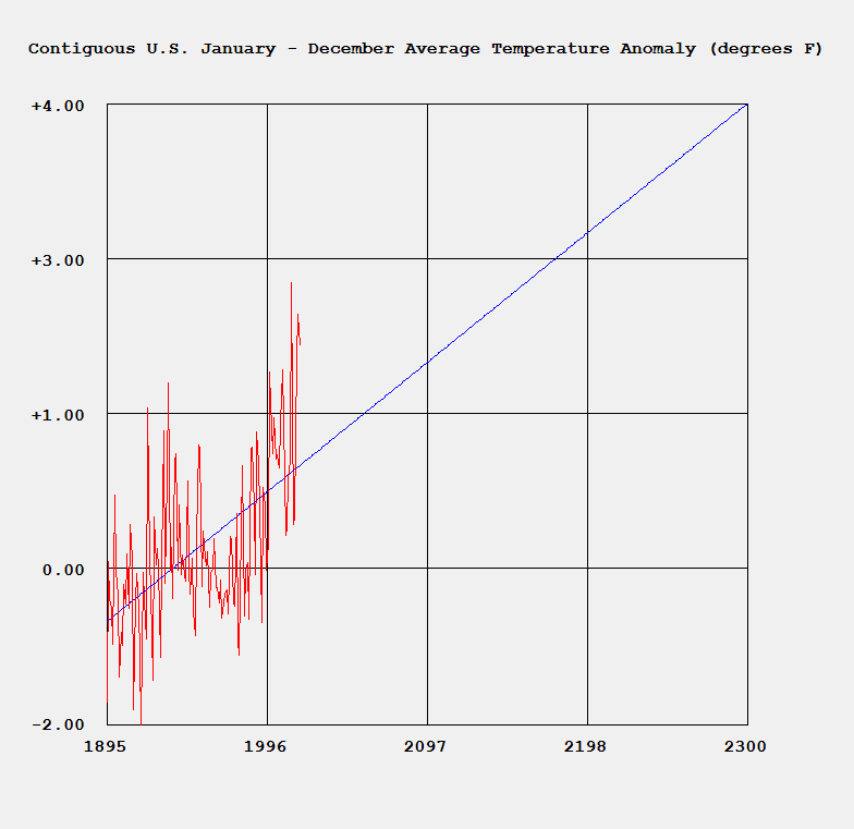 I used the latest recommended data for time period 1895 to 2017. The empirical modeling paradigm I used was simple linear regression. My model goes out to the year 2300. The key formulas used by the model are: