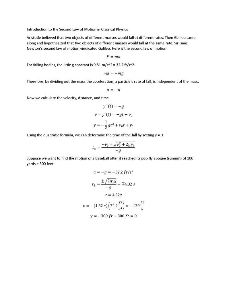 Newton’s Second Law of Motion an Introduction by James Pate Williams, Jr.